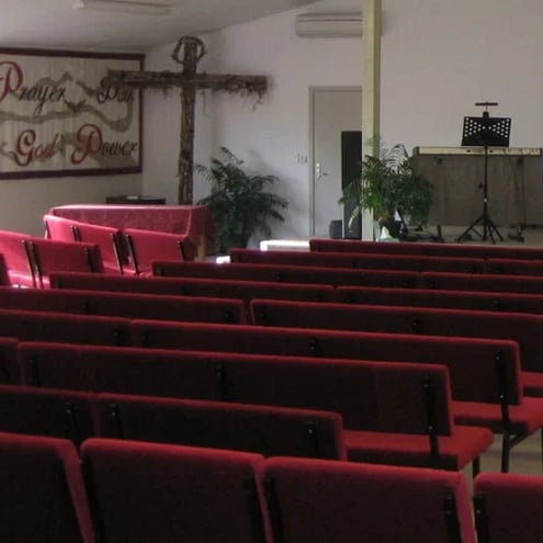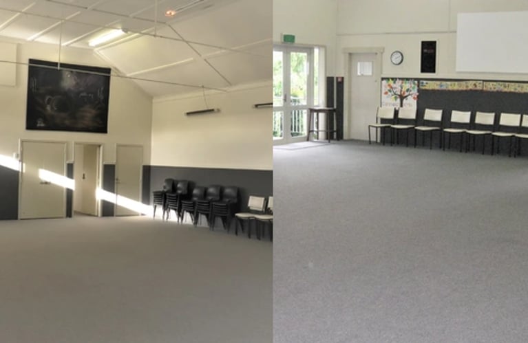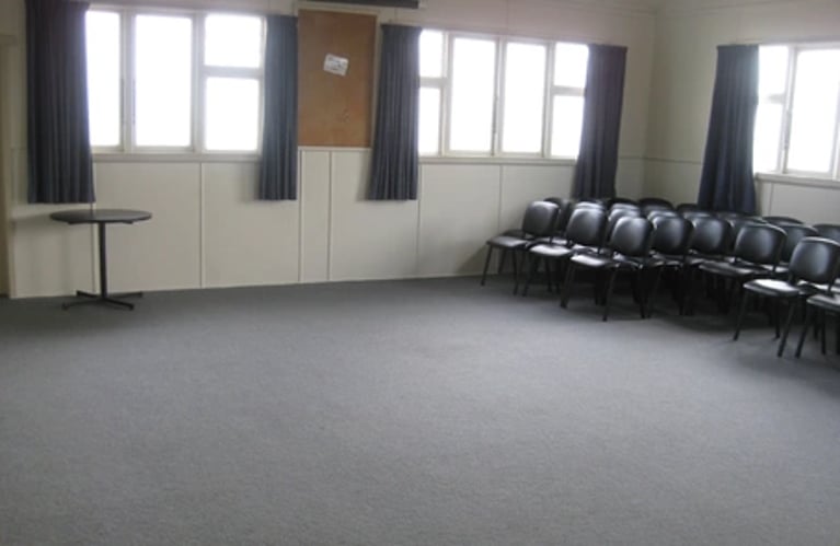FELLOWSHIP ROOMThe small back hall is ideal for all those groups that are looking for a place to call their own. It comes with 50 soft chairs for comfort and tables at request. It is fully heated and has wheelchair access via the built in ramps that take you to the carpark area. There are two unisex toilets in the corridor area next to the entrance. The Fellowship Room also has a kitchen (additional hirage) that can be used for any catered function such as family birthdays, reunions, gatherings, or club days.The floor space = 75m2