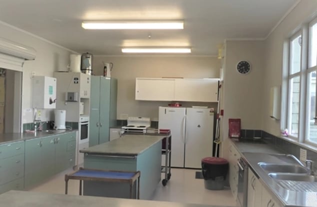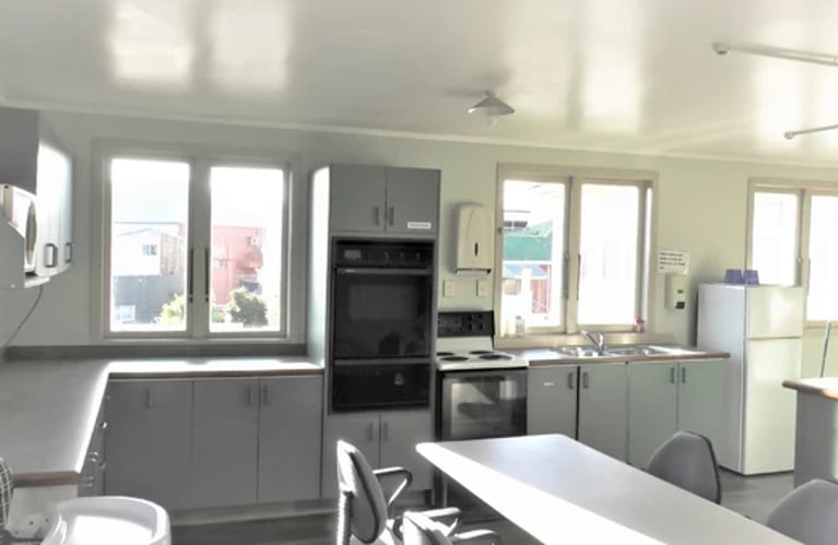 BACK KITCHENThe Back kitchen is a versaile. It is situated between the two Back Halls and is utilised by the Big Hall via a servery. It comes with two ovens, a stove top, a microwave oven, fridge/freezer, and a convientient table with chairs (six placements). There is a host of cups, plates, bowls and cutlery to cater for those morning & afternoon tea breaks, as well as pots and pans should they be required. The Back Kitchen is used for such events as cooking classes, or special occasions when a a kitchen is required.